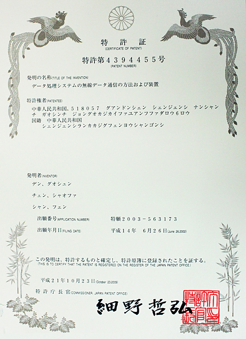 颁发单位:日本专利局